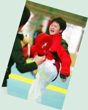 在軍體院的外訓(xùn)館中,近50名中韓一線跆拳道選手在韓國國家隊教練文元載的指導(dǎo)下發(fā)出歇斯底里的撕殺聲,其中那個清脆響亮的聲音則是來自北京奧運冠軍吳靜鈺,個頭在隊中排行倒數(shù)第二的小女孩,用快準(zhǔn)狠且令人眼花繚亂的步伐猛踢著同訓(xùn)的韓國男隊員手中的腳板。混雜在近50名隊員中的她,身上絲毫不見奧運冠軍級的“小灶”。