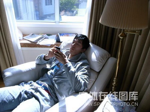 劉翔在美照片曝光:病床上玩手機 俏皮微笑(組圖)(4)