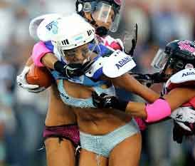 中新網(wǎng)5月19日電 據(jù)臺(tái)灣“今日新聞”報(bào)道,說(shuō)起娛樂(lè)與運(yùn)動(dòng)的結(jié)合,美國(guó)說(shuō)第一應(yīng)該沒(méi)人敢說(shuō)第二。例如劇本高潮迭起的美式摔角或是號(hào)稱(chēng)結(jié)合籃球、足球、曲棍球和體操的美式激爆灌籃,都讓人印象深刻。然而對(duì)于男性觀眾而言,最“刺激”的莫過(guò)于內(nèi)衣美式足球聯(lián)盟。
