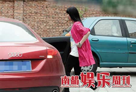 終于楊威有點不耐煩了,站起身來走進了那排平房。記者發現在平房里有一家小型廣告公司,楊云好像在與該公司的工作人員用電腦制作一些材料。大約又過了20分鐘,楊威先出來啟動汽車,楊云拿著一張光碟和一些文件跟著快步走了出來。記者看到楊云穿著一件寬大的白色T恤,腹部微微隆起,孕相明顯,估計已經有三四個月的身孕了。別看有孕在身,但楊云膚色紅潤,步履輕快,不愧是運動員出身,20分鐘后楊威和楊云返回了公寓。
