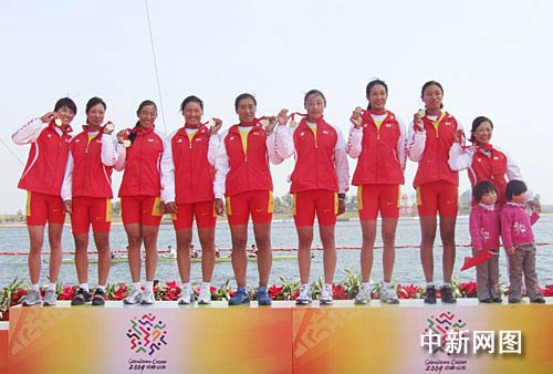 中新網日照10月20日電 (記者 林德強 黨正林) 在今天上午剛剛結束的女子2000米八人單槳有舵手比賽中,由奧運會冠軍奚愛華領銜的山東隊奪得冠軍。為山東水軍再添一金。