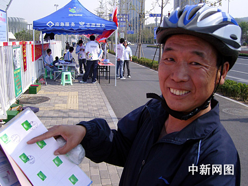 中新網濟南10月25日電(記者 翁陽)10月25日是飛人劉翔進行第十一屆全運會110米欄決賽的日子。中午時分,本社記者在濟南奧體中心巧遇兩名專程從石家莊趕來觀看劉翔比賽的六旬老翁。杜存生和李云江這兩位老人神采奕奕,一身專業(yè)體育裝備,他們以單車每日百余公里的速度,用時三天來到濟南。