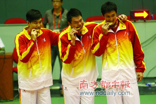 而就在大約三個(gè)小時(shí)前,本屆全運(yùn)會最后也是最重的一金被廣東代表團(tuán)收入囊中,男子籃球隊(duì)在決賽中81比76力克東道主山東,為廣東奪得全運(yùn)會歷史上的首個(gè)男籃冠軍。聯(lián)賽MVP朱芳雨以40分成為這枚金牌的首功之臣。另外衛(wèi)冕冠軍解放軍隊(duì)在三四名決賽中103比94擊敗江蘇,收獲1枚銅牌。 特派記者 劉皓(本報(bào)濟(jì)南電)