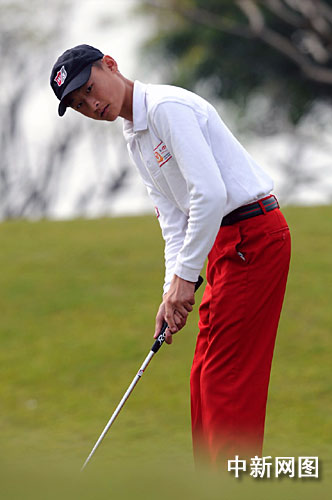 從美國紐約馬不停蹄地前來參賽的粱政不負眾望,在23日凌晨1點鐘抵達金灣球場、9:35從10號洞出發(fā)、完全沒有時間調(diào)整時差的情況下,打出76桿,取得并列第5名。