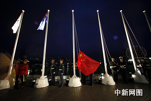 中國代表團(tuán)今天與開曼群島、朝鮮、伊朗和塞爾維亞等代表團(tuán)一起舉行升旗儀式,東道主用一段激情的土著舞蹈對客人的到來表示歡迎。