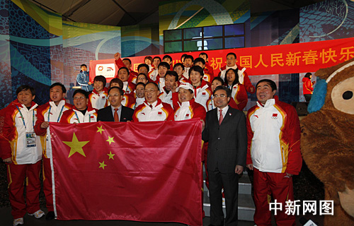 中新網(wǎng)溫哥華2月10日電 (記者 夏宇華 賴海隆)中國冬奧代表團(tuán)今天在雨中舉行了升旗儀式,正式成為本屆冬奧會大家庭成員。升旗儀式后,中國代表團(tuán)團(tuán)長劉鵬帶領(lǐng)代表團(tuán)成員展開橫幅高聲向全體國人送上新春祝福。