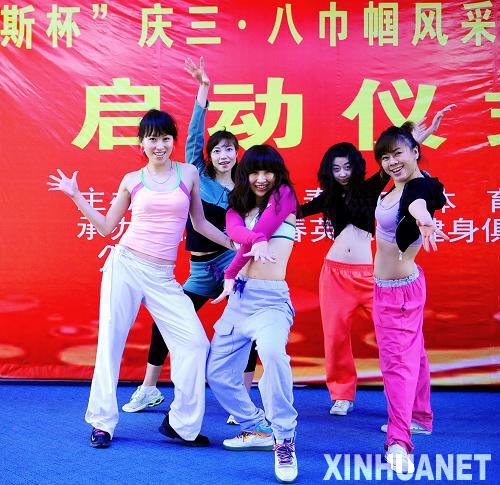 3月8日,長春市民在啟動儀式上表演健美操。當日,由長春市體育局主辦的“慶三八巾幗風采系列健身活動”正式啟動。此次活動歷時3天,包括健身咨詢、體質(zhì)檢測、健身展示、健身指導等內(nèi)容。