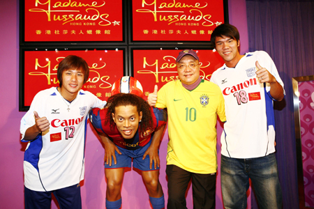 巴西世界級足球明星羅納爾迪尼奧近日加入香港杜莎夫人蠟像館的“體壇猛將”展區。“中央社”圖 陳幸嫚 攝