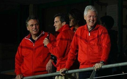其實除了觀看比賽,給隊員們打氣,克林頓還肩負著另外一項重要任務,——他是美國申辦2018或2022年世界杯的名譽主席。在美國隊擊敗阿爾及利亞隊后晉級八強后,他才發現自己幸運地可以看第二場的淘汰賽。