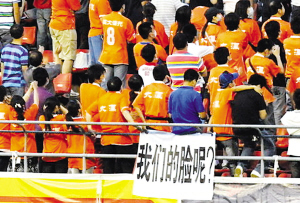 球迷無聲的抗議帶給魯能巨大的壓力,更大的尷尬在比賽結(jié)束后到來。0比0,魯能成為本輪中超惟一一支沒能在主場(chǎng)贏球的球隊(duì),這場(chǎng)平局讓他們把中超榜首位置讓給了北京國安隊(duì)。比賽結(jié)束后,賽場(chǎng)上的球迷出聲了,“下課……”
