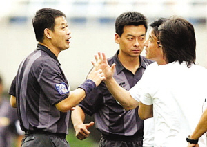 第17輪中超最后的兩場角逐昨天進行,北京國安主場以3:0戰勝長沙金德,陜西中新浐灞隊在主場1:2不敵山東魯能隊。陜西中新隊成耀東賽后情緒有些難以控制,他非常憤怒地暗指了對裁判的不滿。
