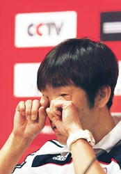 從2006年開始就擔任國足領隊的蔚少輝,則不像高洪波那樣婉轉含蓄,明顯怒了。“該贏得的比賽贏不下來,為什么?我們的隊員意志品質嚴重缺乏,愛國愿望不強烈。聯賽踢得再熱鬧有什么用,國家隊代表的是中國!”他甚至甩下一句狠話:“如果誰不珍惜身上的這套隊服,今后絕不會再招這樣的球員進國家隊!”