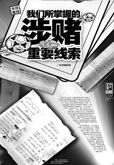 這份線索《遼沈晚報》掌握了3年,為何選擇在此時公諸于眾?對此,郝洪軍說:“3年前,我們3個記者把這份證據交給了足協(xié),謝亞龍、南勇、楊一民進行了接待。也就在2006年初,足協(xié)與公安部聯(lián)手成立打擊賭球活動辦公室。對我們媒體來說,畢竟不是司法機關,這些線索不能叫證據,交出去(給打擊賭球活動辦公室),是正規(guī)的渠道。但是后來沒有了動靜。”