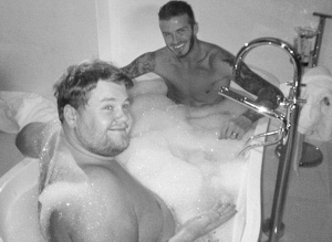 貝克漢姆手術成功,英國媒體心情也不錯。《每日鏡報》昨天發了一張貝克漢姆和英國喜劇明星科登一起洗“鴛鴦浴”的圖片,這張照片是幾周前在米蘭拍的,當時兩人都是為BBC的一個慈善短片客串。兩人在浴缸里一共呆了3分鐘,貝克漢姆還對科登身體的多個部位點頭贊賞。這段畫面被BBC稱為這段慈善短片中“最有喜劇效果的鏡頭”。