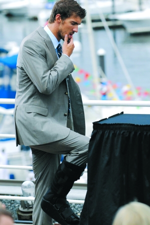 對(duì)菲爾普斯來(lái)說(shuō),戰(zhàn)勝奧尼爾似乎不那么簡(jiǎn)單,因?yàn)樗谥暗能嚨溨信獋擞夷_,發(fā)布會(huì)上,他全程都用護(hù)具緊緊包裹著傷腳,但是菲爾普斯笑著說(shuō):“兵不厭詐,這個(gè)護(hù)具將會(huì)對(duì)奧尼爾造成困惑,他一定會(huì)迷惑我到底能發(fā)揮到幾成,哈哈,我們賽場(chǎng)上見!
