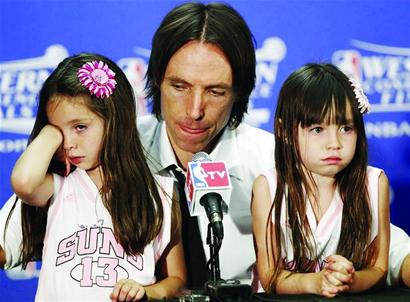 在賽后的發布會上,納什兩個可愛的女兒也出現在了現場,聽到爸爸的一番辛酸言論,兩個女兒當場落淚,而看到女兒落淚,納什再也控制不住自己的情緒,流下了兩行悲壯的英雄淚。(金鑫)