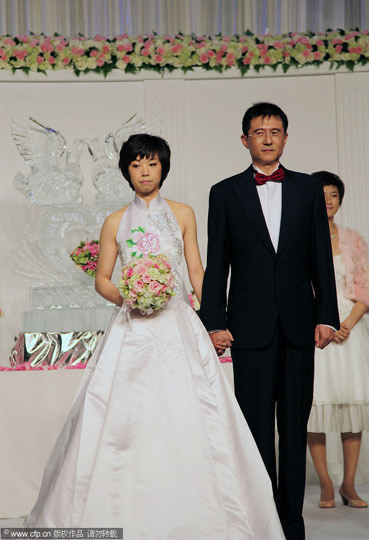 從婚禮照片上看,穿上婚紗的張怡寧顯得優(yōu)雅秀氣。她的婚紗配上了紅花綠葉刺繡,充滿了濃郁的中國風(fēng)。而新郎徐威戴著一副無框眼鏡,黑色西裝配上紅領(lǐng)結(jié)讓他顯得儒雅帥氣。兩人十指緊扣,一臉笑意,新婚的幸福表露無疑。據(jù)悉,徐威是金融界一位成功的商人,曾留學(xué)海外,在北京和香港都有實業(yè);槎Y前接受媒體采訪時,張怡寧對自己的老公閉口不提,只說自己暫時不會離開乒乓球賽場。
