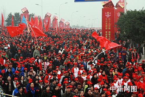 中新網重慶1月30日電 (孟幻)為掀起山城市民的冬日健身熱情,重慶首個短程馬拉松比賽30日正式開跑,吸引了萬名長跑愛好者參與。