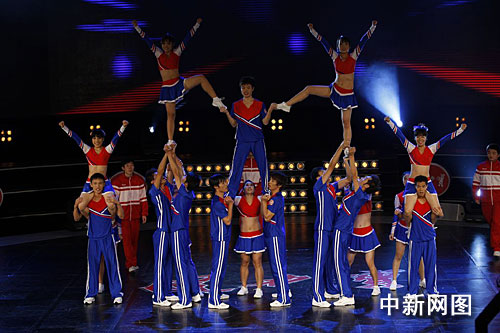 中新網廣州11月22日電 (記者 唐貴江)健力寶亞運啦啦隊全國選拔賽廣州分賽區22日在廣州舉行,來自廣州體育學院等4支本地隊伍和海南、河南、廈門、南寧等地的8支啦啦隊,分舞蹈和技巧兩組進行了激烈的角逐,央視著名主持人韓喬生、體操世界冠軍莫慧蘭以及明星黃圣依等到場助陣。