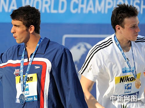 決賽在二十八日下午進行,冠軍爭奪在比德爾曼和菲爾普斯之間展開。在一年前的奧運會二百米自由泳賽場上,比德爾曼還只能眼睜睜地看著菲爾普斯一馬當先,笑納金牌并創造世界紀錄,而他只獲得第五名。不過今天的比賽,比德爾曼卻表現出超強的能力。他在五十米出就已經超出了菲爾普斯,此后,菲爾普斯就從來沒有得到反超的機會,而比德爾曼以一分四十二秒打破了菲爾普斯的世界紀錄,并奪取金牌。