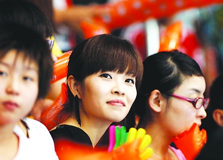 由于現(xiàn)場觀眾實(shí)在是太熱情了,有人中途“劫走”了這束鮮花。這多少讓王丹有些失望。不過,很快有人將亞軍何沖扔上來的鮮花交到她手中,王丹臉上又露出了笑容。