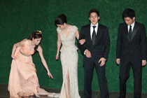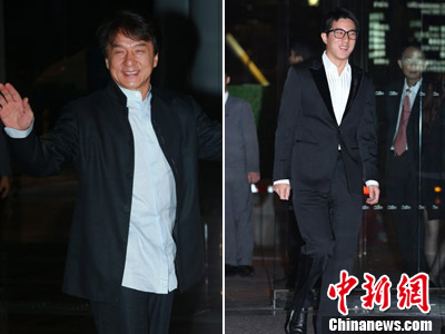 這對情侶以黑色情侶禮服亮相,黑色的包裙外,黑色的小披風襯托出郭晶晶豪門準媳婦的端莊,而霍啟剛在一旁摟著準太太的腰,有一股說不出的甜蜜。