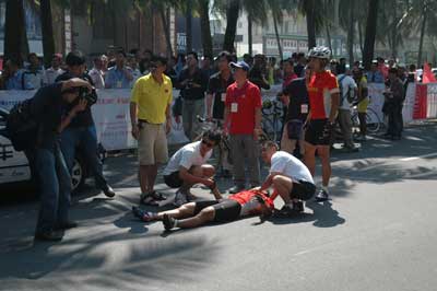 環海南島自行車賽 中國選手惠國意外摔傷(圖)