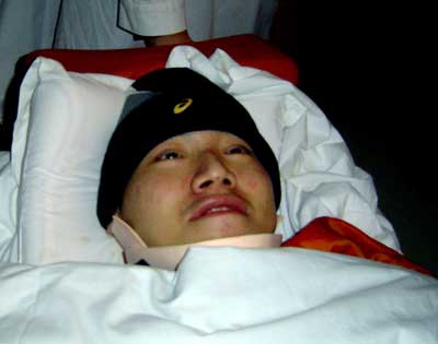 今年6月份在俄羅斯熱身活動時頸椎受重創的湯淼此前一直在上海進行治療,他前天晚上來到北京康復中心進行治療。這也是湯淼重傷之后第一次在公眾面前亮相,目前他神志清醒,頭部能夠輕微搖動,但胸部以下仍無知覺,雙手無法用力。