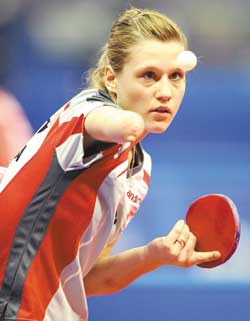 這位名叫娜塔莉亞的獨臂姑娘賽后對記者說:“今天我很幸運,是那種不放棄、不服輸的精神讓我贏得了比賽。”娜塔莉亞為波蘭隊拿到了場上惟一的1分,全場觀眾的掌聲都獻給了漂亮的娜塔莉亞。