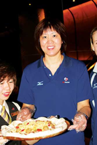 郎平為隊員端出自制的匹薩