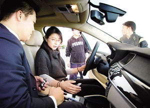 辦理完相關(guān)的手續(xù),郭晶晶就趕緊駕駛著自己的新座駕回家了。(記者劉娜)