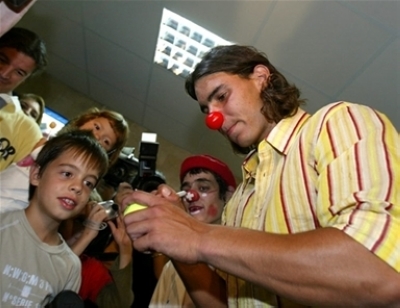 一向熱心公益的納達(dá)爾,很喜歡與孩子們玩樂。四年前,納達(dá)爾就在馬洛卡杜雷塔醫(yī)院扮作小丑安慰受到病痛折磨的孩子們。西班牙RTVE電視臺(tái)稱,這是孩子們令人難忘的經(jīng)歷,“從他們驚訝的面部表情當(dāng)中就可以看出,對(duì)于世界第一的網(wǎng)球選手能親自來給他們講童話,是多么難以置信。”其實(shí),一向喜歡看動(dòng)畫、玩PS2游戲的納達(dá)爾在場外就是個(gè)長不大的孩子。這個(gè)漫畫《七龍珠》的忠實(shí)擁躉,出外比賽旅行時(shí)也總帶著《七龍珠》的DVD,所以講起童話來也頭頭是道。“其實(shí)我不大會(huì)唱歌,相反為孩子們將故事是件不錯(cuò)的工作。”納達(dá)爾坦言。