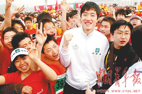 劉翔作為主辦方的代言人出現在主席臺上,原本他還要向北京智泉打工子弟學校的參賽學生贈送自己簽了名的長跑節T恤衫,但因為熱情的觀眾幾乎引起擁擠而被改在賽后進行,就連事先約好的采訪也被迫取消。即便如此,“劉翔”、“劉翔”的喊聲還是持續了很長時間。