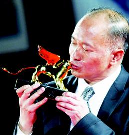 儀式正式開始后,電影宮首先播放了一段節奏明快的短片,將吳宇森從影數十年拍攝電影的精彩鏡頭剪輯在一起。徐克現場改編了他與吳宇森合作的經典作品《英雄本色》里的臺詞來向吳宇森致敬,“我要爭一口氣,不是想證明我了不起,我是想告訴人家,我只想得到我應該得到的東西!彪S后吳宇森上臺,接過閃閃發光的金獅獎杯,他眼含淚光,連連鞠躬致意。在致辭中他對所有支持他、幫助他的親朋好友致以誠摯謝意:“小時候電影只是我的一個瘋狂夢想,沒想到如今卻成為現實,我是個幸運的人……母親的話常在我耳畔響起,如果堅信某事,就要堅持到底! (小魚)
