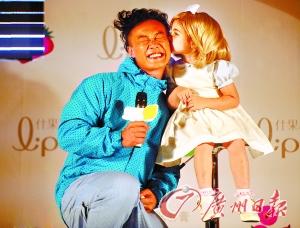 今明兩晚,陳奕迅將在廣州體育館接連上演兩場“90分的快活”演唱會,昨天下午,他忙中偷閑為自己代言的某品牌什果冰潤唇膏造勢。在宣傳活動中,他還與產(chǎn)品廣告中的3歲金發(fā)小美女一起玩親親,惹得現(xiàn)場相機閃光不斷。