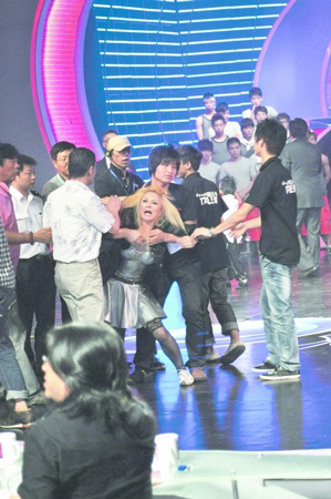湖南衛(wèi)視的《快樂男聲》剛剛落下帷幕,東方衛(wèi)視的《中國達(dá)人秀》即將迎來高潮。不過,在前日舉行的《中國達(dá)人秀》首場半決賽中卻發(fā)生了意外狀況,被淘汰的選手陳靜大鬧現(xiàn)場,最終周立波動用了自己的保鏢才將她和她的丈夫請出舞臺。而一旁的評委高曉松說了一句“上海男人慫”,也惹得眾多網(wǎng)友不滿。昨日,這段從節(jié)目中刪除的視頻流傳到了網(wǎng)上,成為網(wǎng)友熱議的焦點(diǎn)。對于選手的偏激行為,昨日《中國達(dá)人秀》的宣傳總監(jiān)陸偉解釋說:“陳靜未能晉級的失望心情我們可以理解,但她在現(xiàn)場選擇這樣的方式來發(fā)泄,顯得有些過激,因此在節(jié)目最后公開播出的版本中,刪去了這段實(shí)況。”