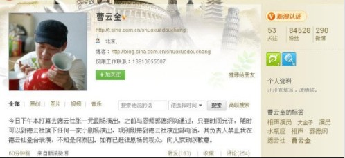 中新網(wǎng)10月25日電 郭德綱得意門生曹云金一直被傳要離開(kāi)德云社,雖然雙方都曾為此辟謠,并否認(rèn)不和,但曹云金昨日(24日)下午卻通過(guò)微博自曝被禁止在德云社登臺(tái)表演,似乎是首次婉轉(zhuǎn)承認(rèn)了不和傳聞。