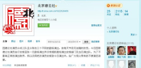 德云社在微博指出:“因德云社演員分成三隊且分別在三個不同的劇場演出,故每天節目無法隨時改變。今日因有德云社演員自行安排至張一元劇場演出并沒有提前通知演出安排部門及當日演出隊。為了不影響正常的演出秩序,所以沒用把該演員安排到今日演出中。”