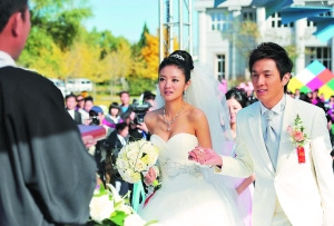 安以軒昨日在微博上說,“今早一醒來就收到神秘人送來的甜蜜巧克力!真是美好的一天~我要結婚了!”讓人誤以為繼大S之后她也要突然閃婚。其實只不過是她和韓星李承鉉在北京趕拍電影《結婚狂想曲》而已。該片講述了一對戀愛7年的年輕戀人,在準備結婚的前幾天,因一場無名火燒碎兩人的夢,于是決定以舉辦一場網絡視頻婚禮直播洞房花燭夜為由頭,吸引各類廠商贊助從而博得貪財岳母的支持,至此,一場啼笑皆非的婚禮轟轟烈烈地展開。昨日記者趕往劇組探班,正好趕上男女主角結婚的一場大戲,安以軒和李承鉉還在現場大秀吻技,惹得一片驚叫連連。