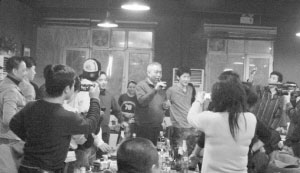 陳凱歌手舉酒杯,先給全組人員深深鞠了三個躬:“這么長時間以來,大家一起經歷了這個拍攝過程,沒有大家齊心合力,就沒有現在的殺青。作為導演,我最想說的一句話就是感謝。”一番話說得不少人都紅了眼眶,而隨著“朋友一生一起走,那些日子不再有”的歌聲響起,劇組里不少男子漢都忍不住痛哭起來。余少群流著淚表示,沒料到散組的這一天來得這么快;“硬漢”孫紅雷也落下淚來:“凌晨殺青后,我一直都沒睡,睡不著,我以前不知道失眠是什么滋味,這對我可從來沒有過,我是真不舍得離開。”