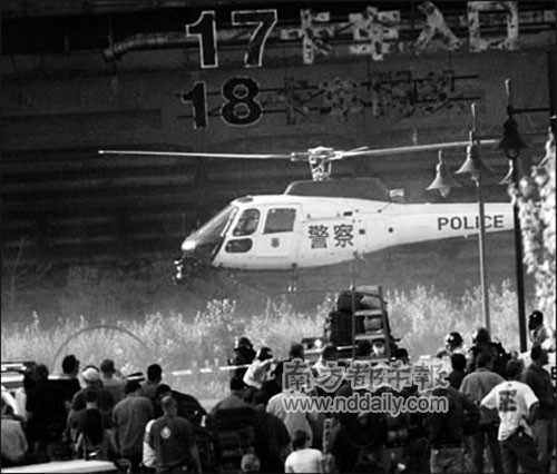 你能看到布景單位新架設(shè)上的“帝國進(jìn)出口”字框,那輛我們之前提到的中國警車,還有參與拍攝的中國警用直升機(jī)和黑鷹直升機(jī)。據(jù)報道,有人在《變形金剛2》拍攝現(xiàn)場發(fā)現(xiàn)了一輛“藍(lán)色前燈的漂亮銀色雪佛蘭考維特跑車”,還看到一輛銀色帶藍(lán)色條紋的奧迪R8跑車,三輛摩托車(分別是藍(lán)色、粉色和黑色),它們可能就是續(xù)集的新角色。