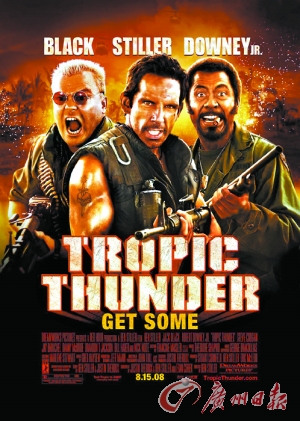 北美媒體為《熱帶驚雷》打了72分,令它成為今年為數不多的高分影片之一。該片主人公都是演員,不少搞笑情節來自于此,處處碰撞出各種接連不斷的笑料。例如,小羅伯特·唐尼飾演一位三屆奧斯卡影帝,但他為了突破自我,全身涂黑扮演黑人士兵,其他噱頭如過氣動作明星參演史上最昂貴的戰爭電影、攝制組陰差陽錯進入真實戰爭,這些諷刺好萊塢的劇情,也令該片成為一出黑色幽默的瘋狂秀。