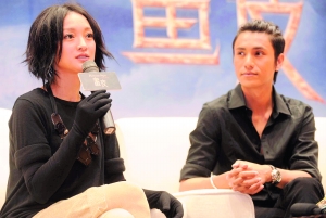 《畫皮》早前曝光了不少陳坤和趙薇的親密戲照片,昨日記者的問題基本都奔此而來。有人很直接問陳坤、周迅和趙薇:“你們三個有床戲,激烈嗎?”陳坤很尷尬地回答說:“導演的要求嘛。”由于主演中只有陳坤一人看過電影。所以趙薇很吃驚地問周迅:“你們也有床戲嗎?”周迅答:“我們沒有床戲,我們有水戲!甭牭酱嗽,趙薇露出“放心”的神情說道:“我們作為夫妻,有這樣的戲也是正常的嘛。”