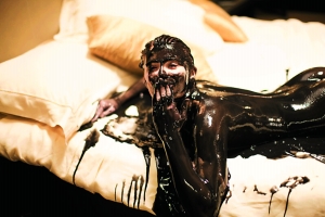 不過扮演邦女郎的22歲演員珍瑪卻表示拍這場戲時差點沒命,她說:“我不能動,不能看,不能呼吸也聽不到聲音,當時黑油已經流進我耳朵了!彪m然如此辛苦,不過珍瑪很滿意這場戲的效果,并認為這一場面“有可能成為經典”。