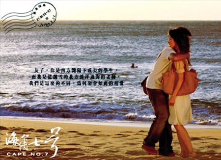 最近,臺灣很流行一句話:“你,海角了嗎?”源于一部賣座臺灣本土電影《海角七號》。目前,這部電影的票房已經超過3.2億元新臺幣(約8000萬元人民幣),刷新了臺灣有正式票房統計以來華語電影票房的最高紀錄,不僅超過了《色,戒》,還一舉將16年前成龍主演的《超級警察》踢下冠軍寶座。據說,有影迷竟連看18遍,片中“永不放棄”的小人物成為了大家的“心靈雞湯”。難怪導演魏德勝發話:“別小看臺灣電影!”