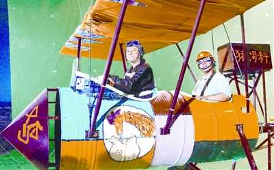 爆笑賀歲喜劇《高興》近日曝光了一組巨“牛”的劇照——一架由破銅爛鐵組裝的“鐵公雞”號山寨版飛機,并由身著專業航空服的男主角郭濤駕駛,身后則是頭戴建筑安全帽的旅客馮瓅,十足的山寨版“萊特兄弟”的派頭。