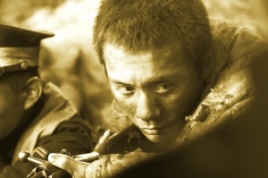 在隨著人物的演繹一起“擰巴”的同時,劉燁和導演陸川都意識到,讓這個濃眉大眼的男青年在密集的槍口下活著離開是一件幾乎不可能的事,“在最初的劇本中,我飾演的軍官本來要在屠殺中幸存下來,躲藏一段時間后最終逃出城,我們也已經拍攝了一部分這些戲。后來有一天,我和導演陸川發現不能這樣繼續發展下去,在當時的情況下,全城的青壯年都幾乎無一幸免,這樣一個身材高大的男青年怎么可能活著走出去?”就這樣,劉燁扮演的陸建雄主動走上刑場,直視槍口,面無表情地死去。