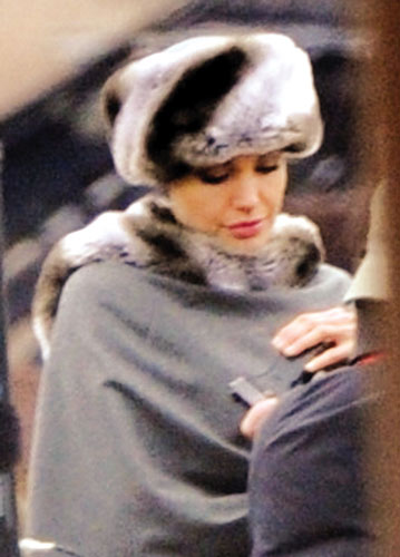 昨日,因拍攝新片《特工鹽》而暈倒的安吉麗娜·朱莉重返拍攝現(xiàn)場。朱莉看上去相當虛弱,上身裹在一件皮草披風(fēng)之中,頭戴一頂帽子。