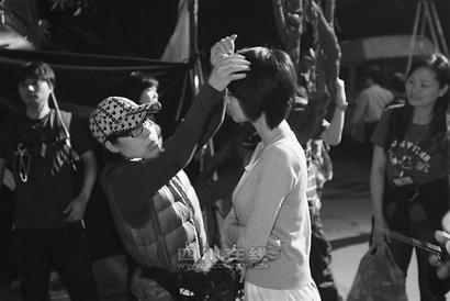 昨日拍攝的戲其實并沒有太多復雜的內容,畫面就是高圓圓和鄭宇成在一條老巷子里面邊走邊說的畫面,不過兩人來來回回走了一晚上,拍攝了一個通宵。為了營造一種雨后的氛圍,劇組人員用水管將整個小巷子澆得濕漉漉的,連墻體都要全部澆濕。住在巷子里的居民都成為了群眾演員,該開店還開店,該打麻將還打麻將,只是不能在巷子里走動而已。因為兩人全部用英語對白,所以每次拍戲前高圓圓都拼命地練英語,特別是她還要背草堂的英文解說詞,難度很大。“說好英語可能不容易,說熟了總沒問題吧?隨便什么語言,說上1000次,總歸熟練一點。”