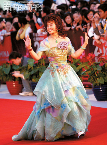上榜理由:走在金雞獎頒獎禮的紅地毯上,劉曉慶應該比任何人能感受得到時代的變化,她已經不止一次參加這個頒獎禮。但對于劉曉慶來說,也許歲月永遠停留在美好的80年代,紅地毯著裝意味著舞臺裝——這是她的選擇。做工拙劣的裙子完全襯不起她在演藝事業上的成就,復雜得說不清道不明的各個細節互相排斥,印染面料裙擺看起來像一堆破布。